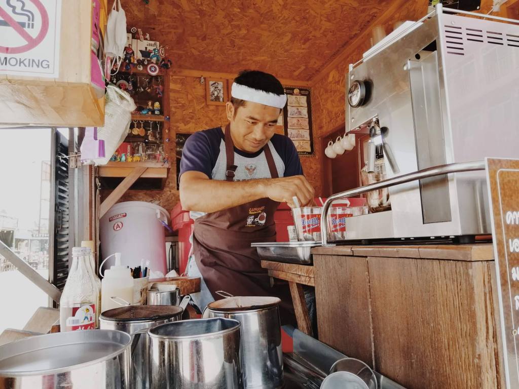 Today, I had lunch at my favorite restaurant, and I felt very thirsty. At that moment, I wanted some sweet drink, but there was no sweet drink in that restaurant so I looked for a cafe. Accidentally, I saw a small cafe which was on the truck, and I bought a cup of Thai tea. The seller spoke with his soft tone to me and he smiled like it was from his heart. This made me felt warm. I think in the future, I would have a service mind like him when I do my job, a cabin crew.